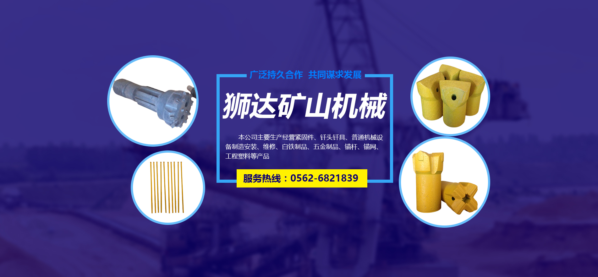 銅陵獅達礦山機械有限公司成立于2006年5月,公司位于安徽省銅陵市獅子山冬瓜山銅礦境內。主要生產經營緊固件、釬頭釬具、普通機械設備制造安裝、維修、白鐵制品、五金制品、錨桿、錨網、工程塑料等產品。